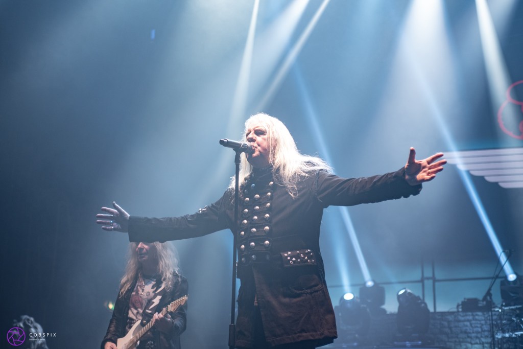With half hour break in-between each show and running back to the stage front, I was getting my steps in tonight for sure! Next was Uriah Heep. Now I have not heard a whole lot of their music so was intrigued. Well, they blew me away! What a great show! From entering the stage to finish, they rocked it and frontman Bernie Shaw hardly stayed in one place. The crowd were bouncing and singing along to their classic songs. Mick Box smiled the whole show, making it a pleasure to shoot him and his guitar poses. A 7-song set included “Look at Yourself”, “July Morning” and ending with “Easy Livin” which everyone was singing along to. Smoke shooting up from the front of the stage and a huge backdrop added to the visual aspect of the show, all round a top set and I am new fan!