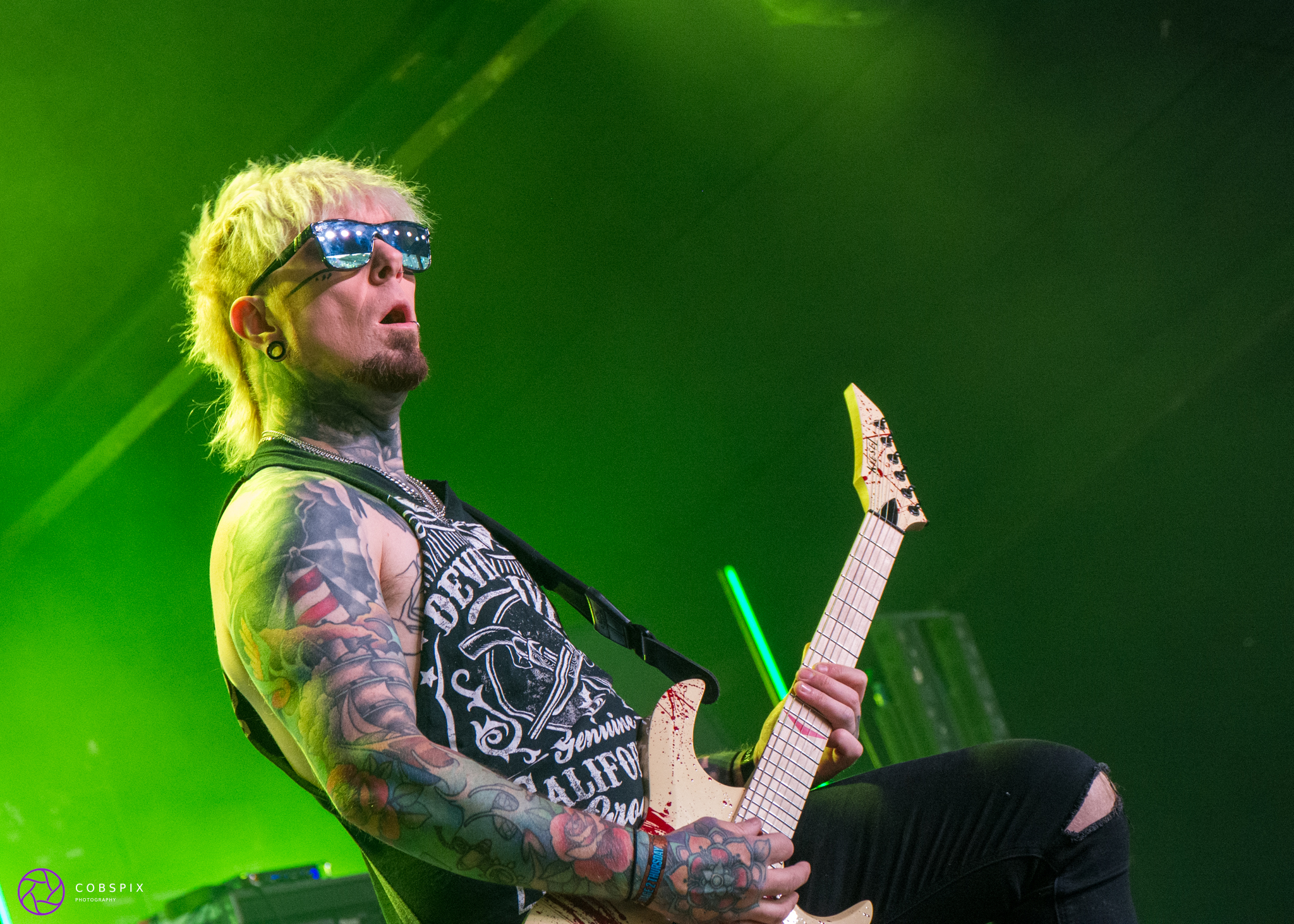 The words on everyone’s lips now were South of Salem, their growing fanbase were grabbing their places front of the Trooper Stage. Setting the stage with some chilling pre-show tapes and entering with dancers and props, this was a show designed to leave an impression before they’d played their first note. Energetic and on-point technically, they ripped and roared through a well-flowing set of Black Veil Brides and Avenged Sevenfold-meets Horror Flick Hard Rock, including tracks ‘Jet Black Eyes’, ‘Death of the Party’ and the closer, ‘Cold Day in Hell’. Well written melodies meant that if you didn’t know the song initially, you were singing by the end of it. Fans including young kids had faces donned with their idols black crosses shows what a devoted following they have, and they had a show they won’t forget right there, what a performance!!