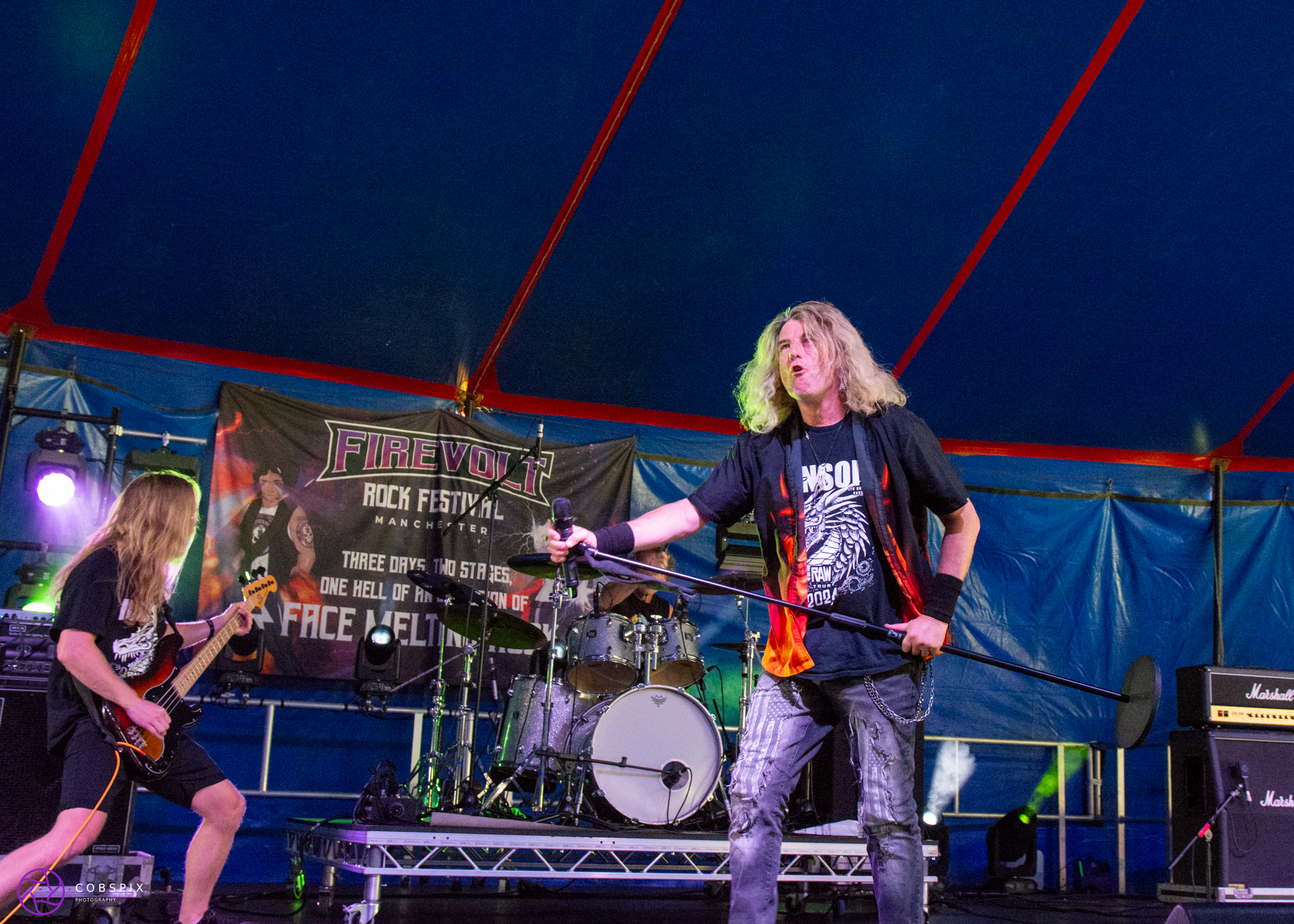 The next band on today’s bill were a band I played on my radio show (Ange’s Rock Show) back in lockdown – Ransom These guys brought the stadium rock experience to the Big Top Tent with their high energy classic rock tracks! Following what I heard was an awesome covers set they put on for the party the previous night, they were back for round 2 this time with their own songs. Their tracks included “Even Nuns Watch Porn” and “Locked Down In London” which reflected their tracks being written during lock down. Ending on “Back to the Boozer” this was a strong set, Matt is a great front guy and never stops smiling, the band clearly have a good time, and so did the crowd. What a fantastic set and nice to finally meet the man himself! 🙂