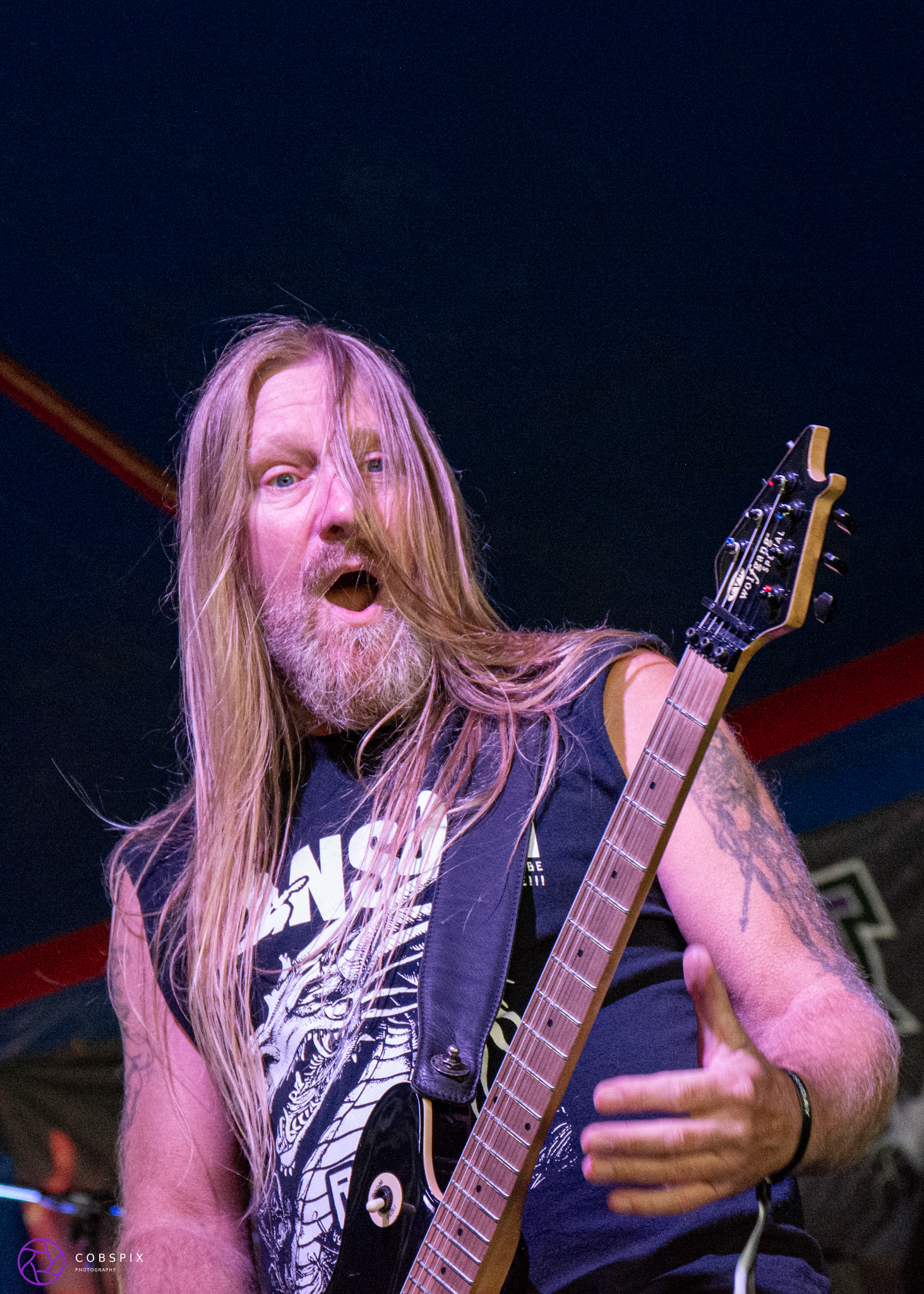 A great band to have on a lineup like this is Darren Wharton’s Renegade, which gives you a good break of time in a sea of new music to hear something familiar. A full-set of Thin Lizzy classics including ‘Jailbreak’, ‘Are You Ready’, & ‘Chinatown’ faithfully recreated and led by Darren Wharton, who was full of stories to share and gratitude for a life lived well. Dare guitarists past and present rocking out front stage along with Darren, to smash out more Lizzy classic seventies numbers such as ‘Waiting for an Alibi’ and ‘Suicide’. One of the last songs was the well known favourite ‘The Boys are Back In Town’ with lyrics changed to ‘Down at Firevolt baby grill’ then ‘Rosalie’ rounded up a brilliant set which was a huge crowd pleaser.