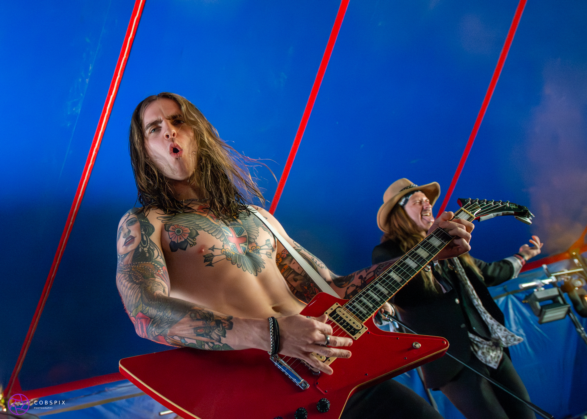 I head over to the Trooper stage to catch the first band of the weekend – We Three Kings who are actually now 2, and take a skeleton (Bonesey) on stage to replace the 3rd member. The 2 lads from Manchester sure make enough noise for 3 though and hit that Trooper stage with their full-barrel bats outta hell rock n roll! Blasting through their setlist of tracks including earlier heavier numbers ‘Buried Alive’ & ‘Edge of Death, and their latest banger “Get Back”. The lads were brilliant, no fancy set up, just high energy rock n roll, proper old school style. A fantastic opener to the festival!