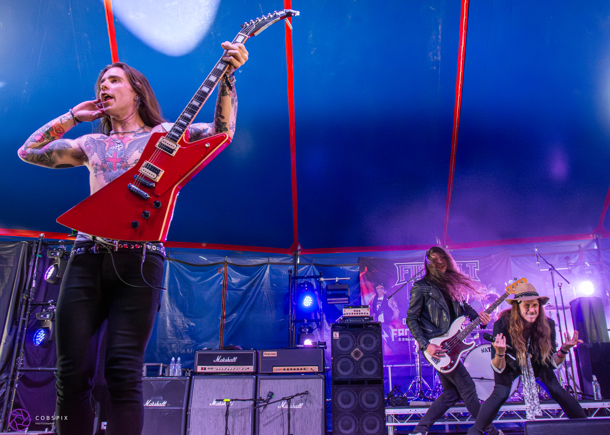 As the site continued to fill up with revellers and bands, the weather was great and Firevolt was just warming up. The schedule was set up so you didn’t miss a band, and around 20 mins gap in-between each one, meant there’s time for a quick loo trip or grab a beer and head over to the next stage.