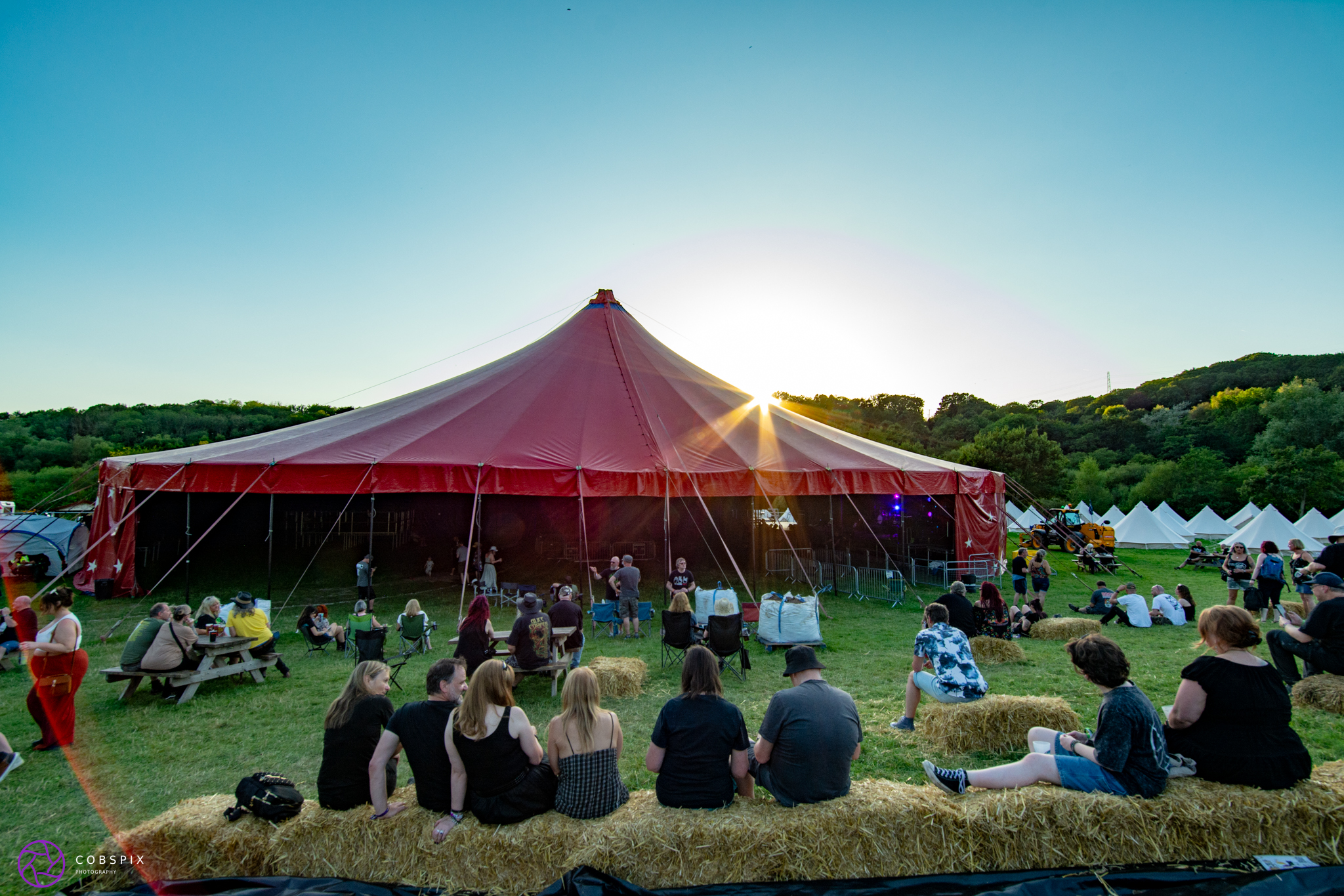 I had a wander round the site in between bands, and treated myself to a beer on occasion from the huge bar in the barn. It’s so spacious in there, and a welcome shelter from the afternoon heat. Revellers were sat on their chairs or the hay bales scattered around the sides of the barn chilling along with the band in full view. Merch sales were held in the barn again which is a great opportunity for the bands to make some sales of support. The odd tractor passing through the site, gave a reminder of the working farm the festival is held on, and a lovely countryside vibe to it. The many food vendors and little stalls selling anything from jewellery to cowboy hats were set all around the site for customers souvenir opportunities. There was even axe throwing activity this year!