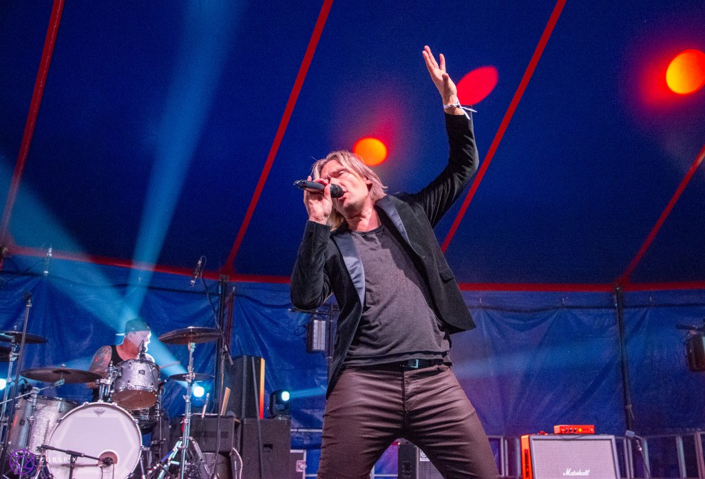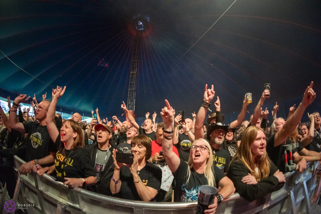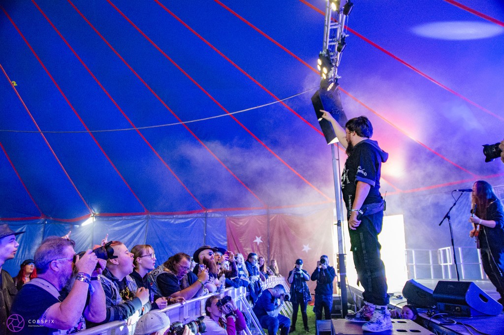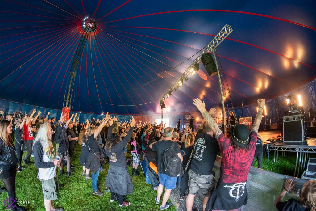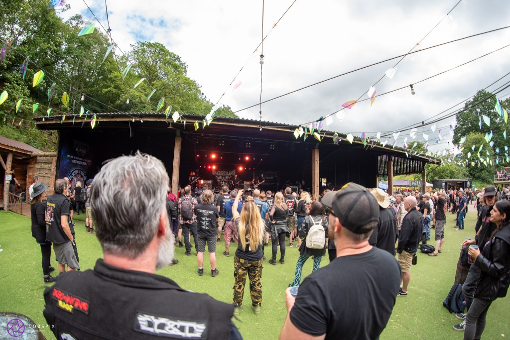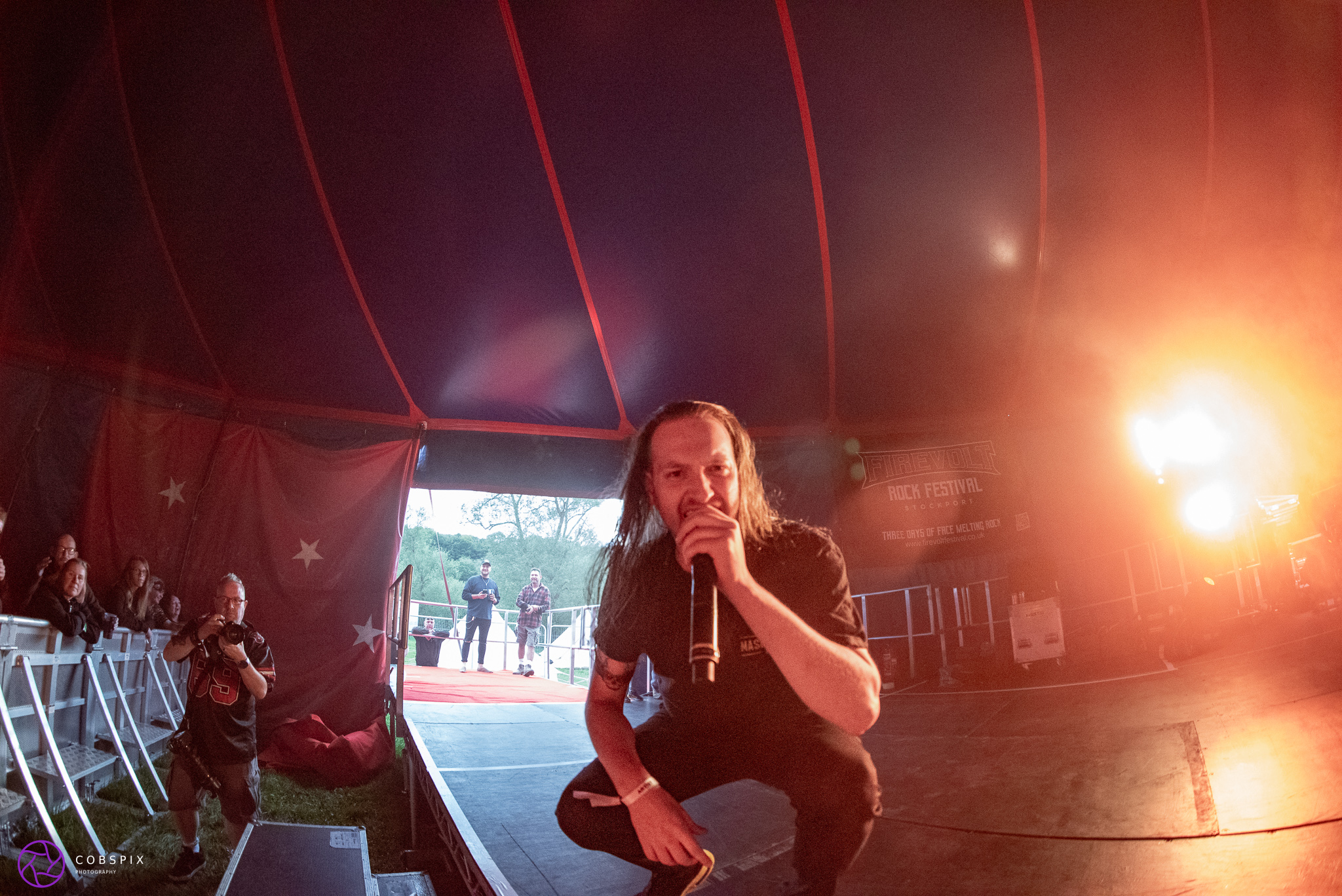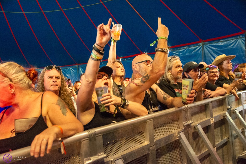 I park up and go straight in just in time to catch White Raven Down on the big top stage delivering some awesome hard rock. This is a brilliant stage by the way, located just a few steps from the main Trouper stage. Around the tent were seating (including bails of hay) and a small bar, then press area was round the back. Such a great atmosphere here, and the band sure warmed up the crowd for their weekend ahead. Unfortunately I missed Luna Marble’s set who were battle of the bands winners, but heard they smashed the set and I hope to catch them soon.