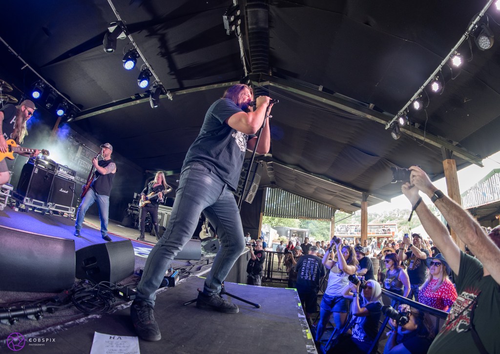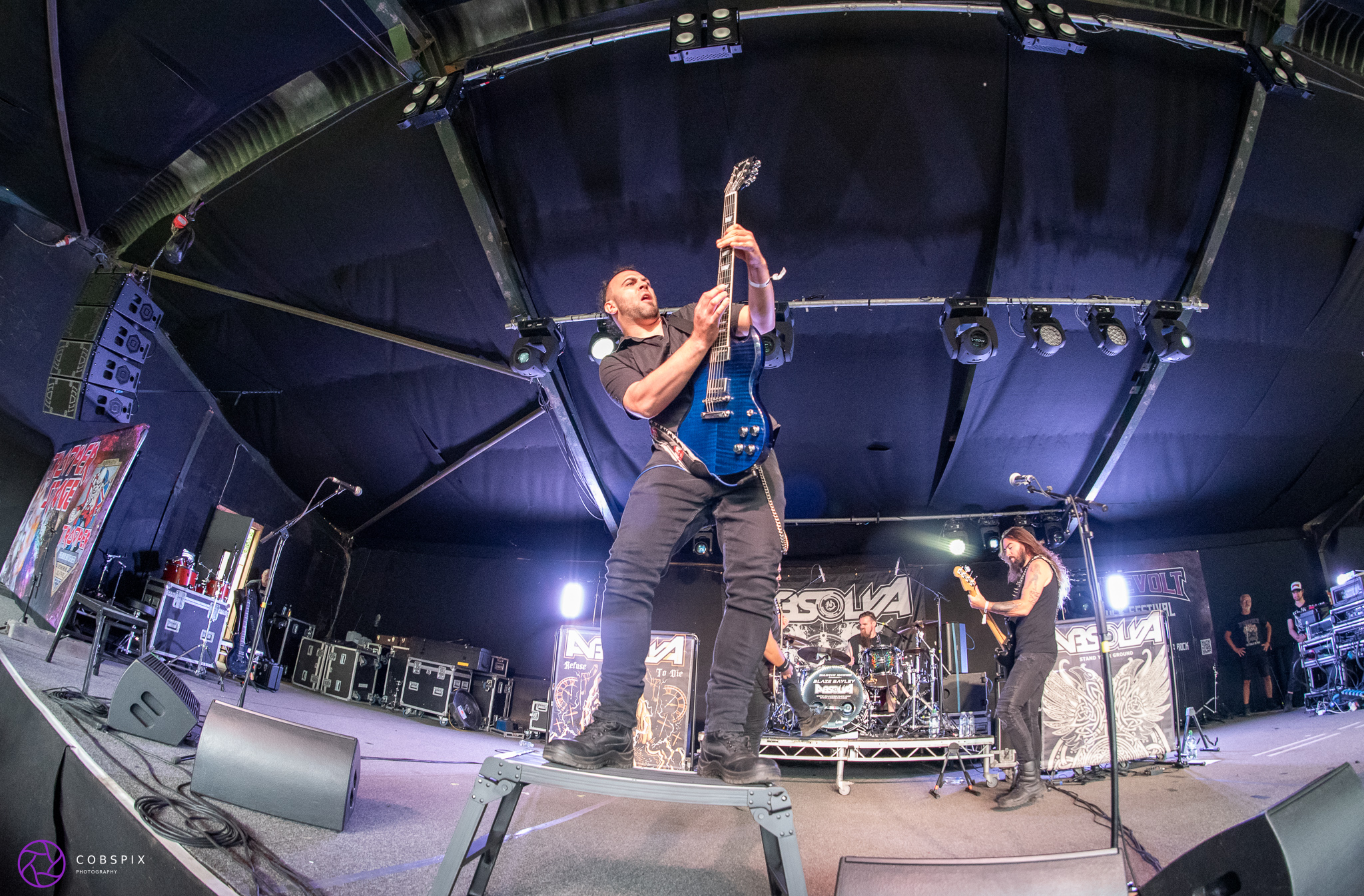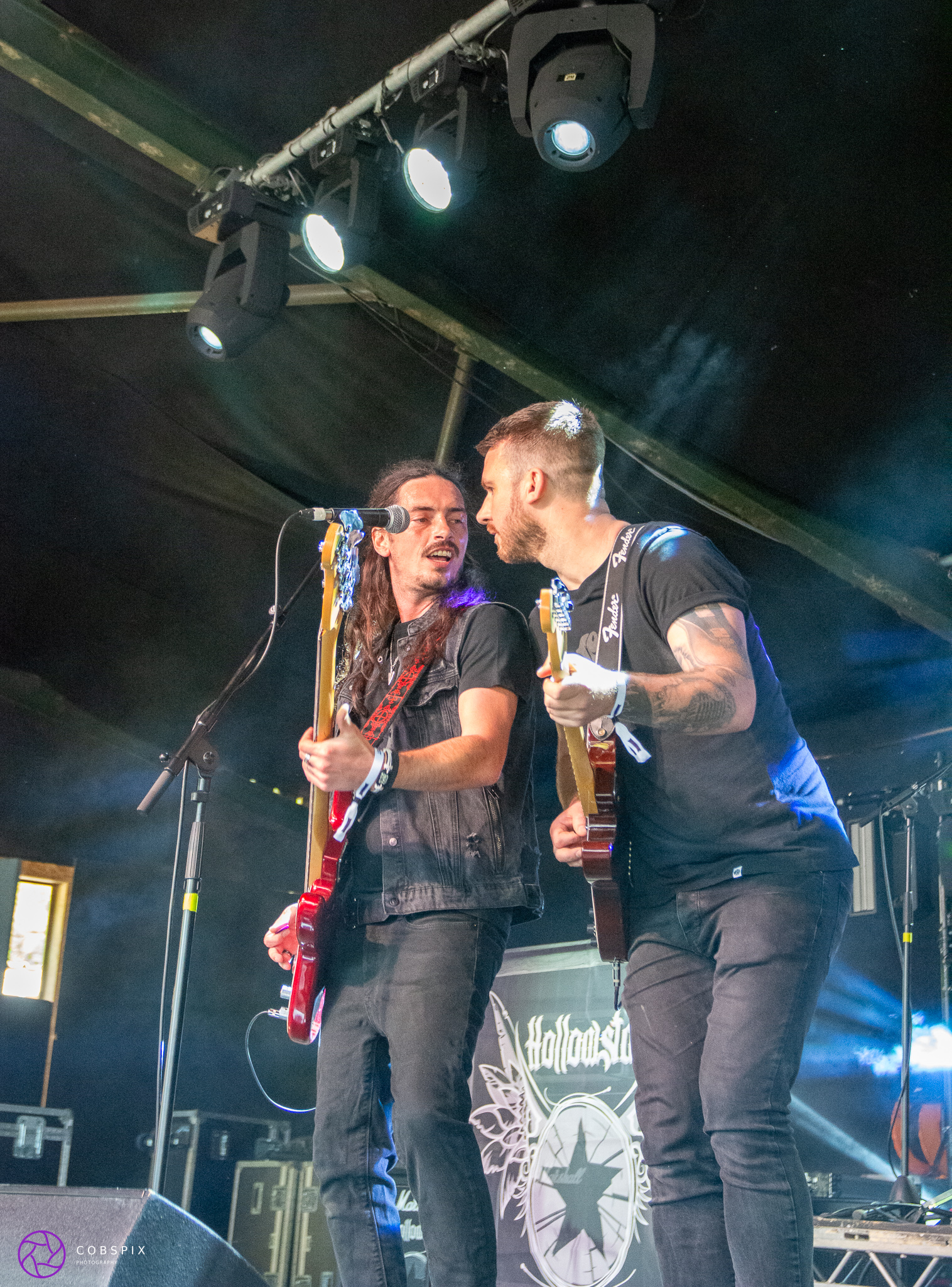 The next few bands of the day were Hell’s Addiction, Sons of Liberty & Hollowstar. The line up was scheduled so that you would not miss a band as they were alternating between each stage. The sun was out and everyone was in high spirits and atmosphere was hotting up. Hell’s Addiction were a crowd pleaser with their heavy rock, personally one of my faves. It was first time seeing Sons of Liberty with new frontman Russ Grimmett, he fits right in with his powerhouse vocals. Hollowstar, having seen these a few time, the lads delivered yet another strong performance, lively and energetic as ever! Crowd got going with each band leaving no one disappointed. With the stages being so intimate, it meant the crowd had a good view/listening from the area round each stage it is the best layout I have seen in a festival.
