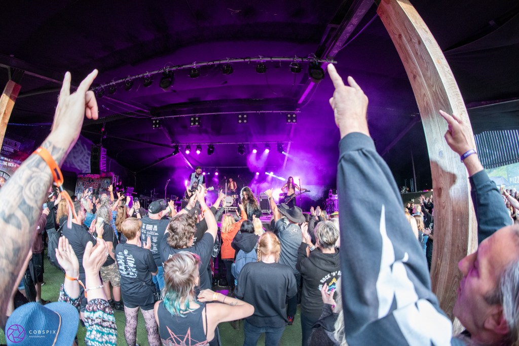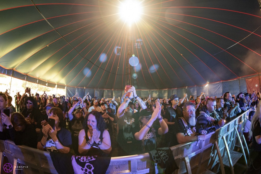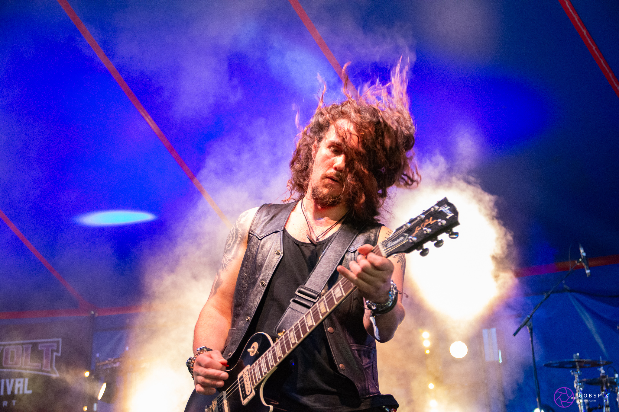 Jack J Hutchinson brought his blues rock set to the big top and showcased some excellent guitar skills! Black Spiders next up, another one I haven’t seen before. With legendary Planet Rock DJ Wyatt Wendals on drums, the band performed an awesome set.