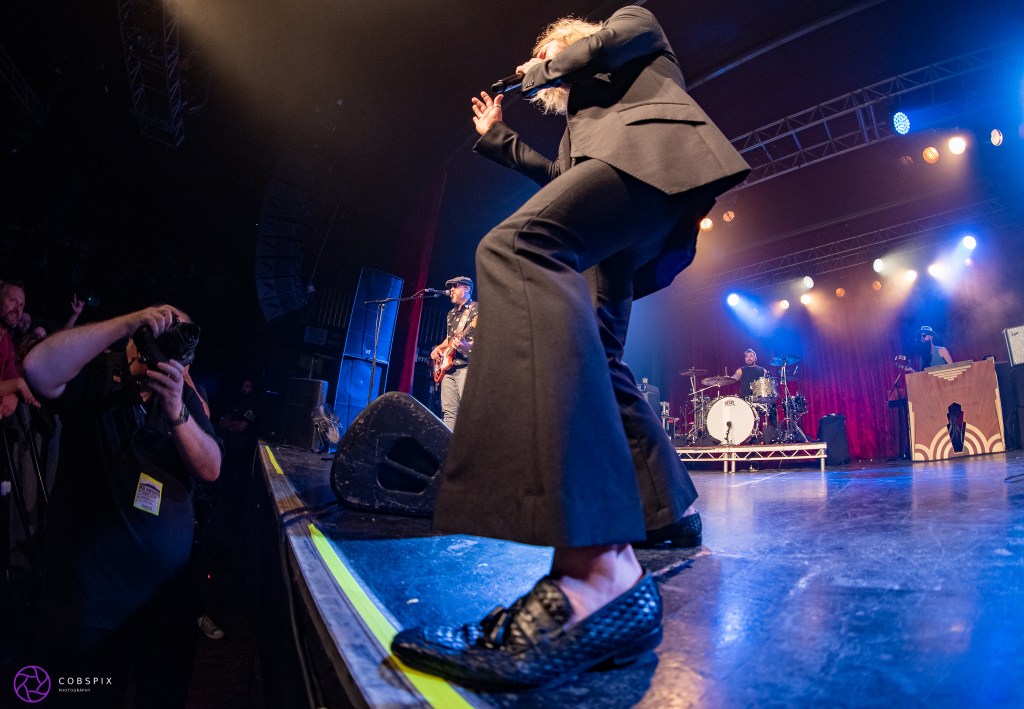 Time for the main act – Rival Sons who I have been waiting to see for too long and tonight they bring their “Pressure & Time 10 year Anniversary” Tour playing the album top to bottom.The band enter the stage to huge applause, guitarist Scott Holiday, Bassist, Dave Beste, Michael Miley on drums and keyboardist Todd Ogren. Jay Buchanan appears shortly after, looking like the ever so suave frontman in his black 3-piece suit to even louder applause and the band kick off with ‘All Over The Road’ straight away followed by ‘Young Love’ & ‘Pressure & Time’ I love the versatility of this very cool 5-piece from Long Beach California, shifting from bluesy to gritty rock sounds. The crowd are lapping it up, singing and dancing along, Jay frequently coming to front stage to gain crowd interaction.